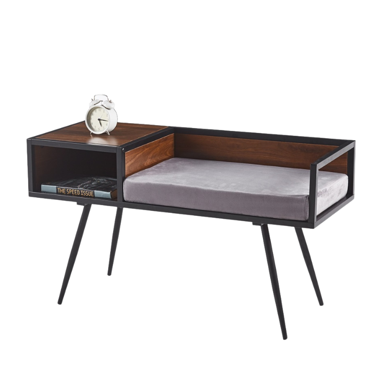 Geef je interieur een moderne en praktische touch met dit stijlvolle bankje met tafel en opbergruimte. Het bankje is voorzien van een comfortabel zitkussen, ideaal om schoenen aan of uit te trekken. Naast de zitting bevindt zich een handige zijtafel met open vak, perfect voor het opbergen van boeken, tijdschriften of accessoires. Dankzij het strakke design met metalen poten en houtaccenten past dit meubelstuk moeiteloos in de hal, woonkamer of slaapkamer.