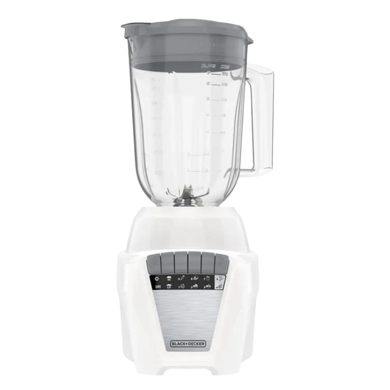 De Black & Decker Blender 1.6 liter mixt moeiteloos smoothies, sauzen en soepen dankzij krachtige roestvrijstalen messen die zelfs ijs en harde ingrediënten verwerken. Met meerdere snelheidsinstellingen en een pulse-functie bepaal je zelf de perfecte textuur. De handige vuldop maakt het eenvoudig om ingrediënten toe te voegen tijdens het blenden, en de vaatwasmachinebestendige onderdelen zorgen voor snel en makkelijk schoonmaken.