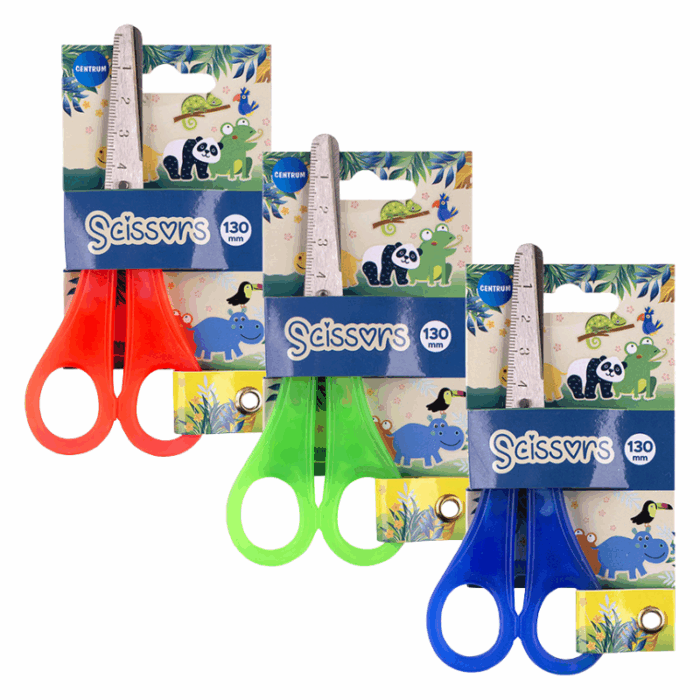 De Centrum Schaar met Maatverdeling 130 mm is een slimme combinatie van een schaar en liniaal in één. Dankzij de duidelijke maatverdeling op het lemmet kun je nauwkeurig meten tijdens het knippen – ideaal voor schoolgebruik, knutselprojecten of precisiewerk.
