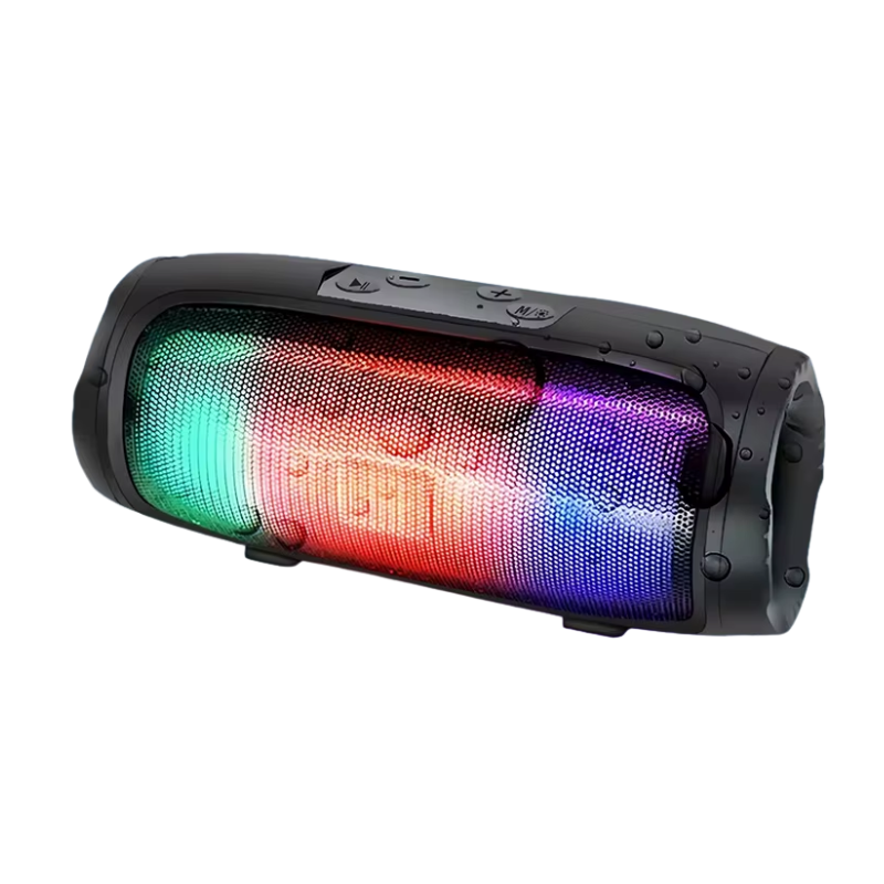 De speaker is voorzien van een USB-oplaadpoort, zodat je hem snel en gemakkelijk kunt opladen. En met het splashproof ontwerp hoef je je geen zorgen te maken over een beetje water – perfect voor gebruik in de tuin, op het strand of tijdens een feestje.