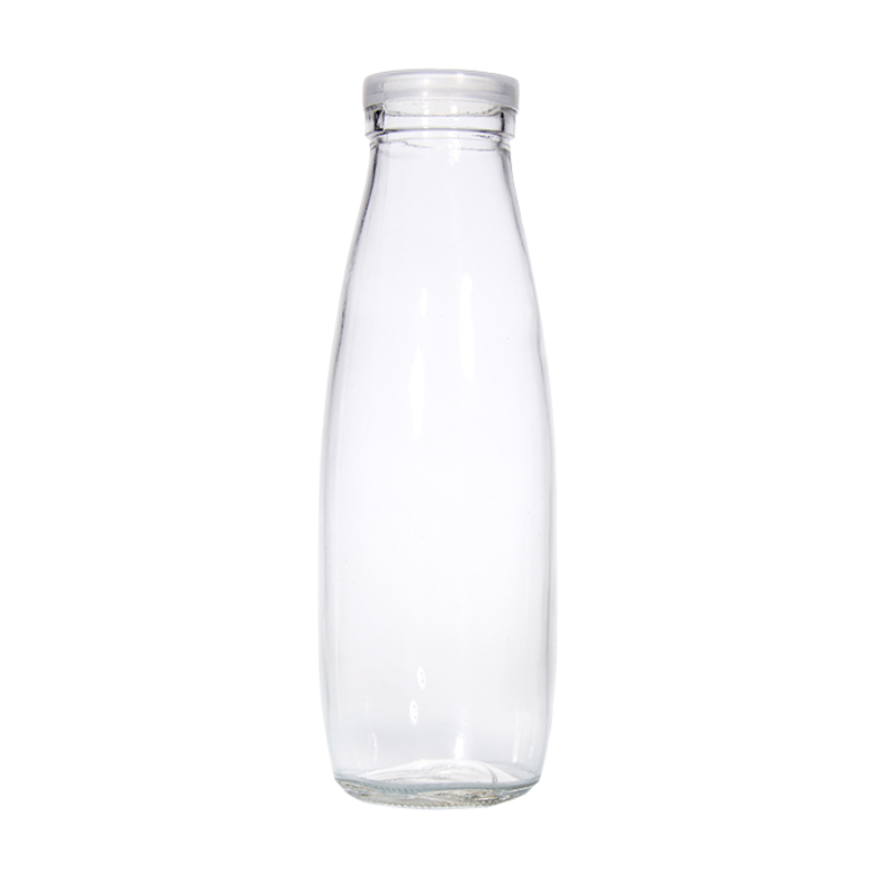 Deze transparante glazen fles van 500 ml is ideaal voor het bewaren en serveren van melk, sap, water of andere dranken. De fles is gemaakt van helder glas en voorzien van een stevige plastic dop die zorgt voor een goede en lekvrije afsluiting.