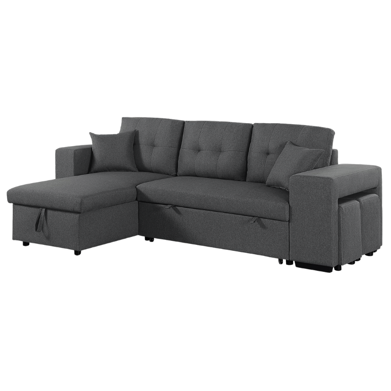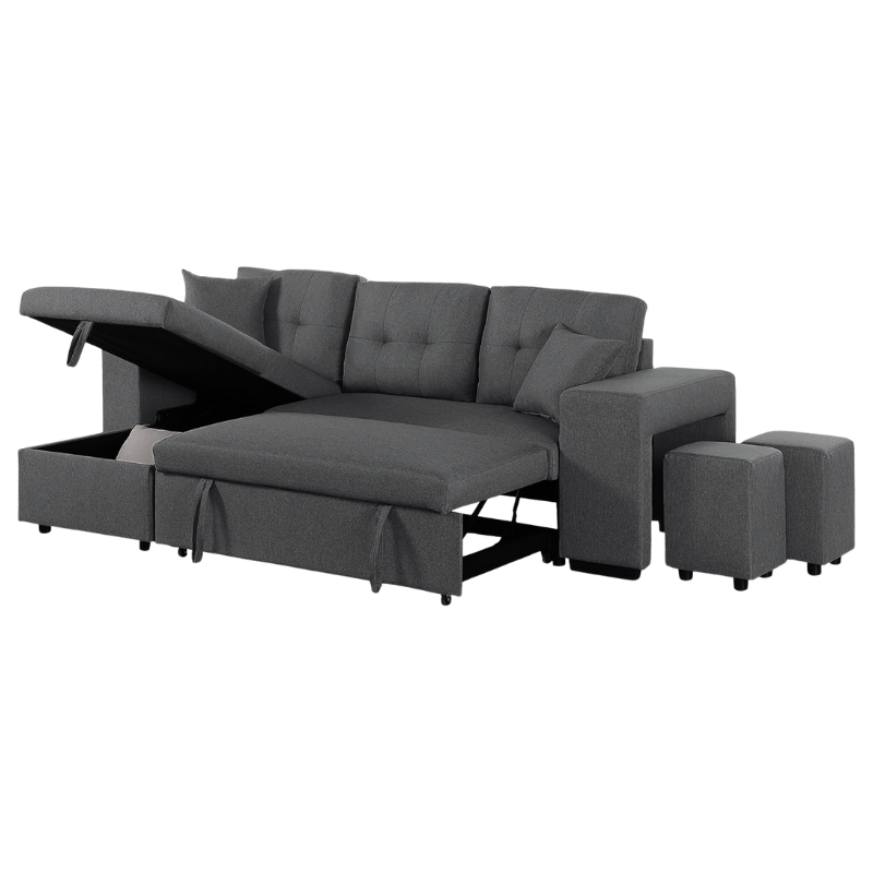 Dit multifunctioneel bankstel combineert modern design met praktisch gemak. Overdag een comfortabele bank voor het hele gezin, ‘s avonds eenvoudig om te toveren tot een ruim bed voor logés of ontspannen avonden. Ideaal voor kleine woonruimtes, studio’s of als extra slaapplek in huis.