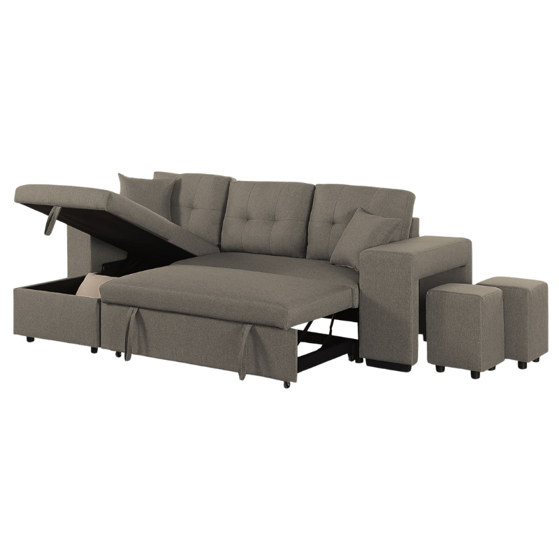 Dit multifunctioneel bankstel combineert modern design met praktisch gemak. Overdag een comfortabele bank voor het hele gezin, ‘s avonds eenvoudig om te toveren tot een ruim bed voor logés of ontspannen avonden. Ideaal voor kleine woonruimtes, studio’s of als extra slaapplek in huis.