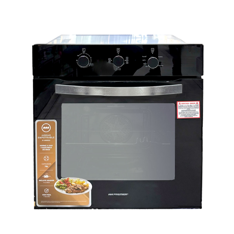 De Premier EF-8996E&G is een moderne inbouwoven van 70 liter die gas en elektriciteit combineert voor veelzijdig en efficiënt koken. Met zijn stijlvolle design, mechanische bediening en krachtige functies is deze oven ideaal voor zowel dagelijks gebruik als uitgebreid koken of bakken.