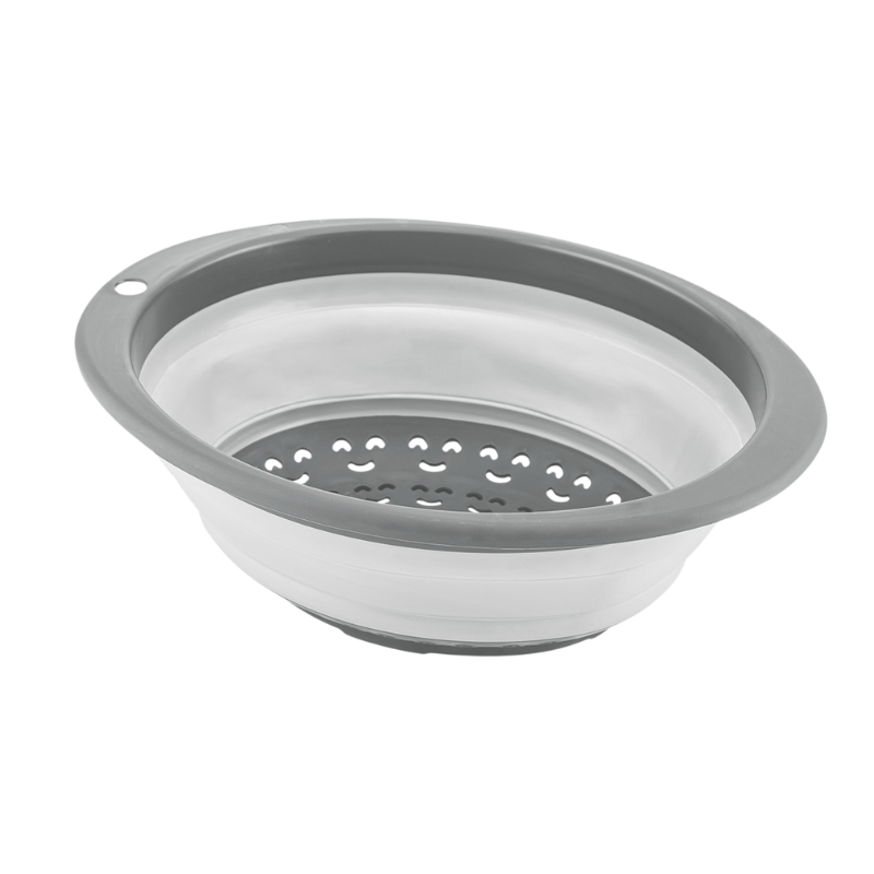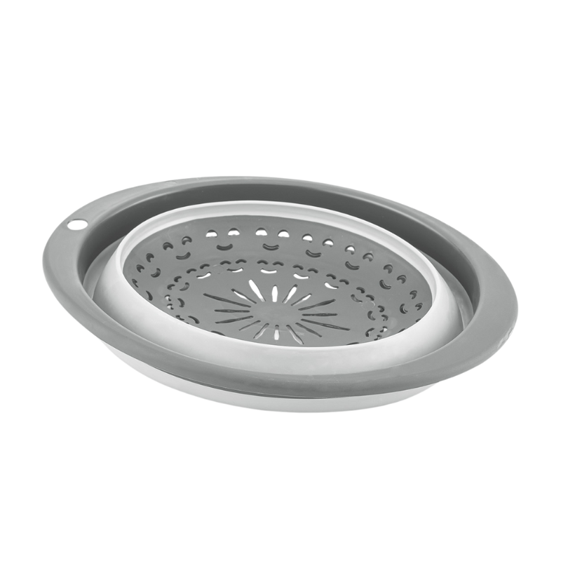 Gemaakt van stevig kunststof en siliconen, combineert dit vergiet duurzaamheid met flexibiliteit. Ingeklapt is het slechts een paar centimeter hoog, wat het makkelijk op te bergen maakt.