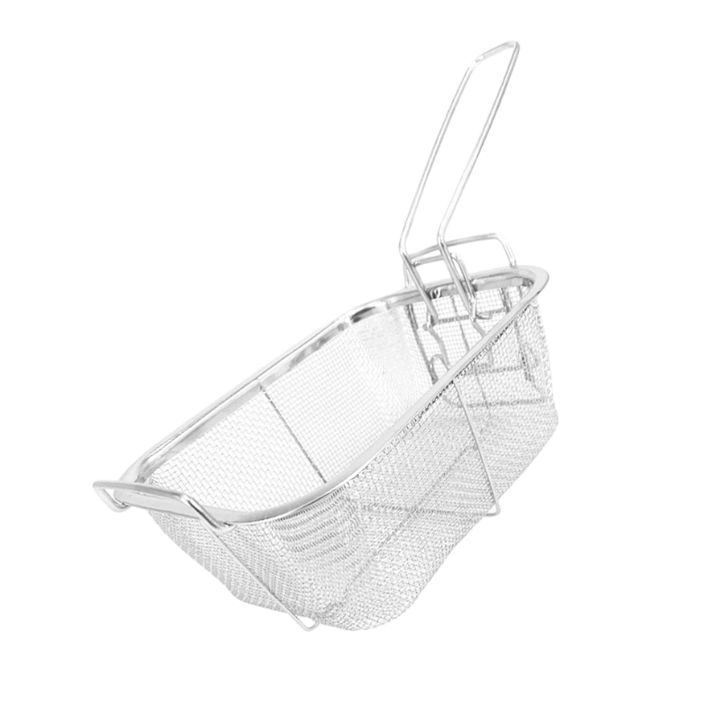 Deze rechthoekige frituurmand met handgreep is ideaal voor het veilig en efficiënt frituren van friet, snacks en andere gerechten. De stevige RVS constructie zorgt voor duurzaamheid en langdurig gebruik, terwijl de praktische handgreep het eenvoudig maakt om de mand uit de friteuse te halen. Geschikt voor thuisgebruik en professionele keukens.