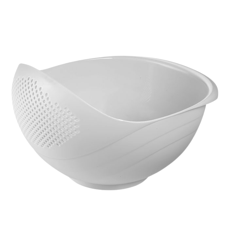 Deze ruime rijstkom maakt koken een stuk eenvoudiger. De ene kant fungeert als klassieke mengkom, terwijl de andere kant een handig zeefgedeelte heeft. Zo spoel je rijst, pasta of groenten af en giet je overtollig vocht direct af zonder extra keukenhulpjes. De kom heeft een schenkrand en stevige grip, handig voor het schenken van sauzen uit de diepe kant van de kom. Perfect voor drukke dagen en slimme thuiskoks.