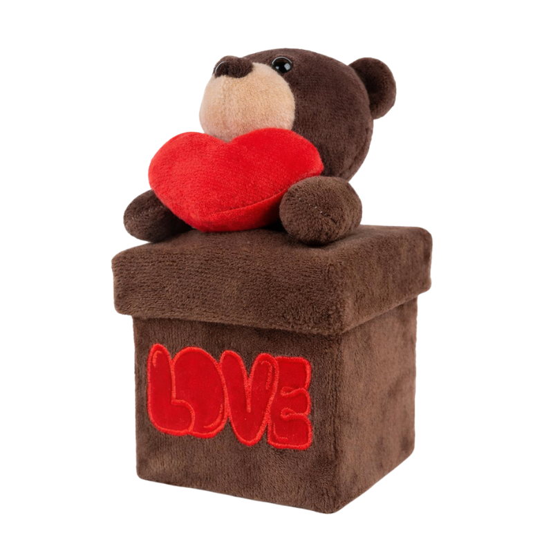 Verras iemand speciaal met deze Teddybear Cadeaubox van 20 cm. De schattige teddybeer zit bovenop een zachte cadeaubox en houdt een rood hart vast – een perfect symbool van liefde en aandacht. De box is afgewerkt met het woord “LOVE”, wat dit product ideaal maakt als romantisch cadeau.