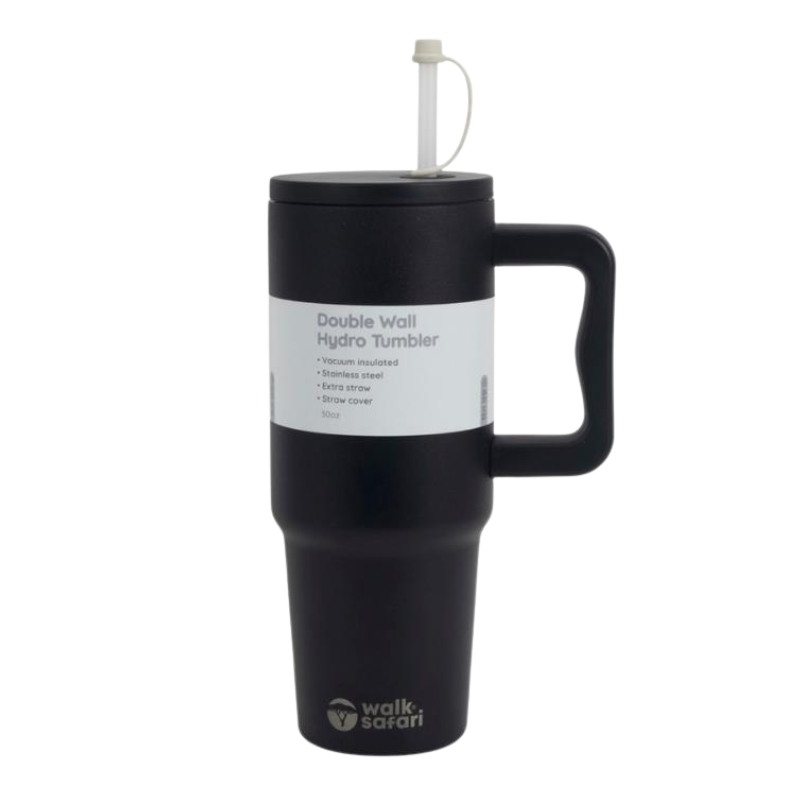 Walk Safari Thermosbeker met Rietje & Handvat 30 Oz – Zwart