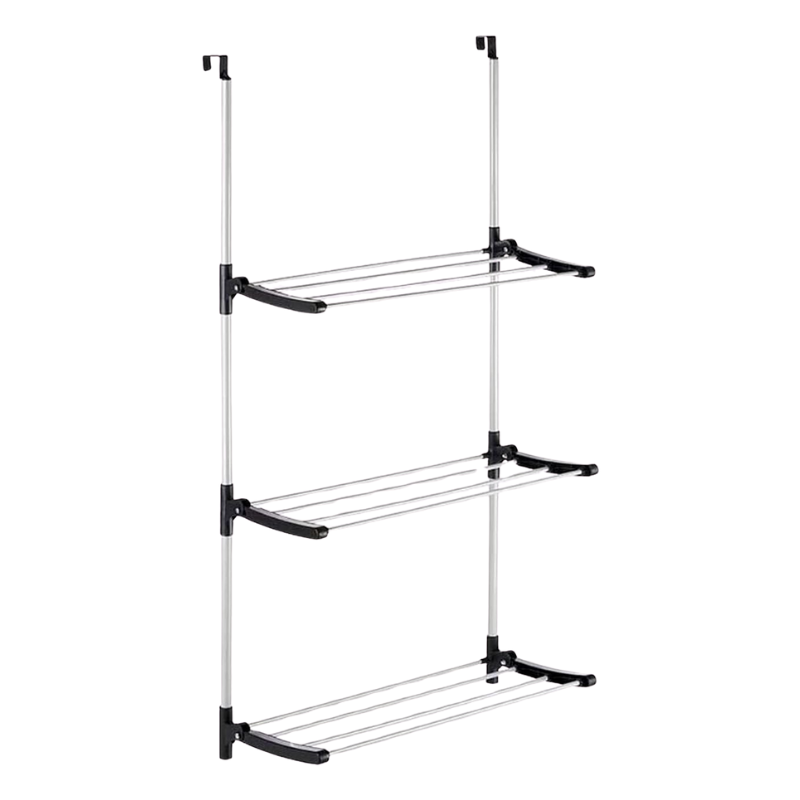 Maximaliseer je droogruimte zonder vloeroppervlak te verliezen met dit duurzame wanddroogrek. Het rek is eenvoudig over een deur te hangen en biedt drie niveaus voor het drogen van kleding, handdoeken of accessoires. Gemaakt van stevig metaal met kunststof verbindingen, is dit rek ideaal voor kleine woningen, studentenkamers of wasruimtes.